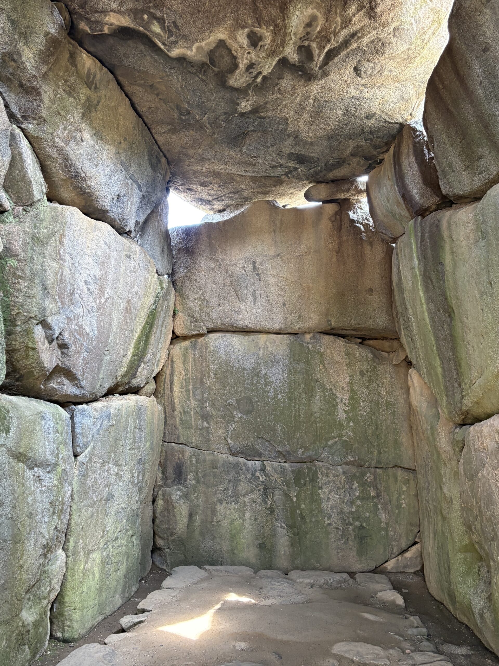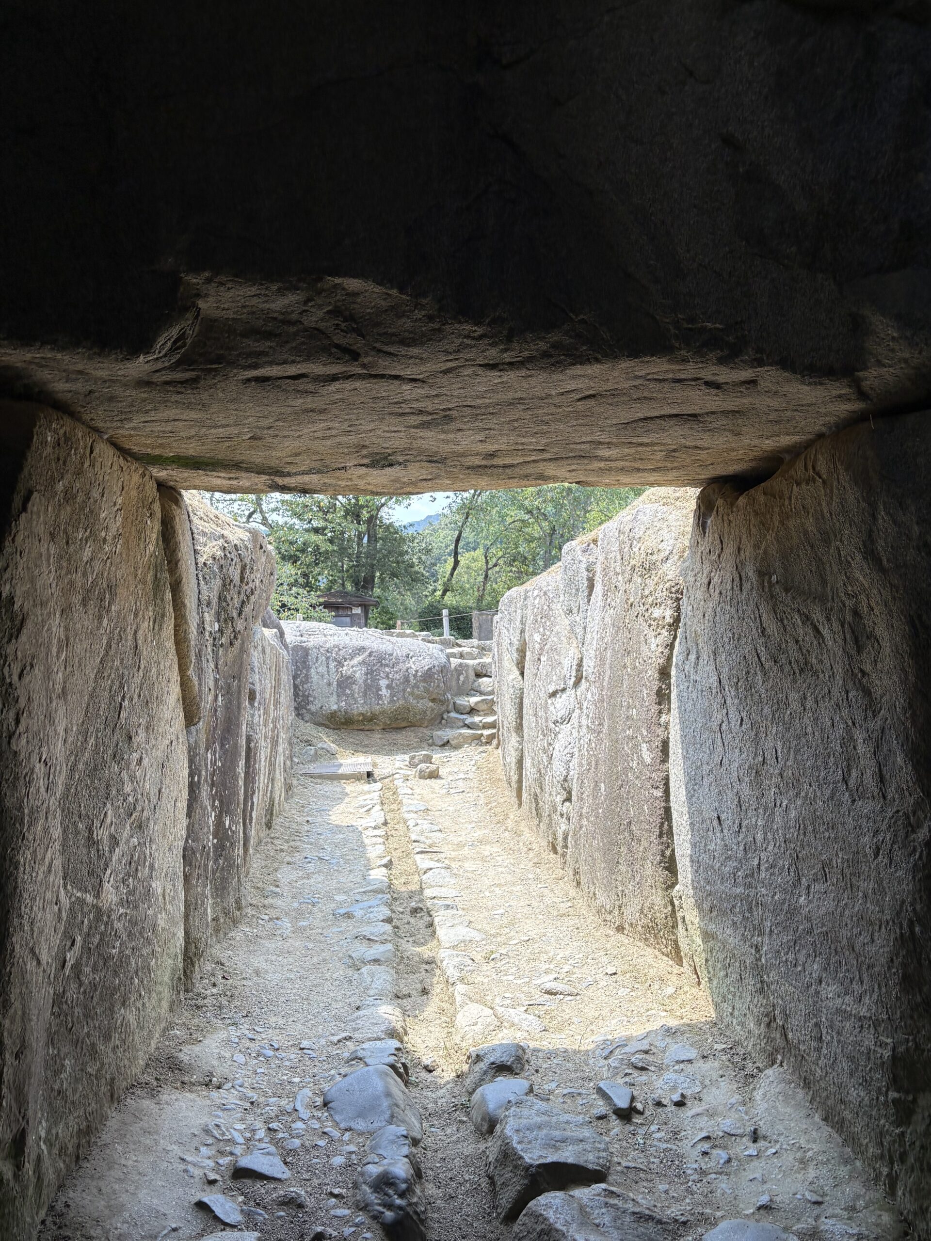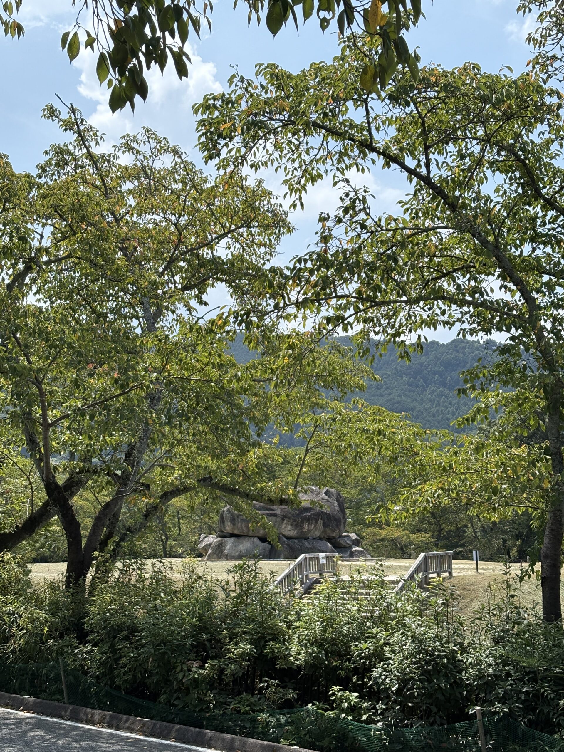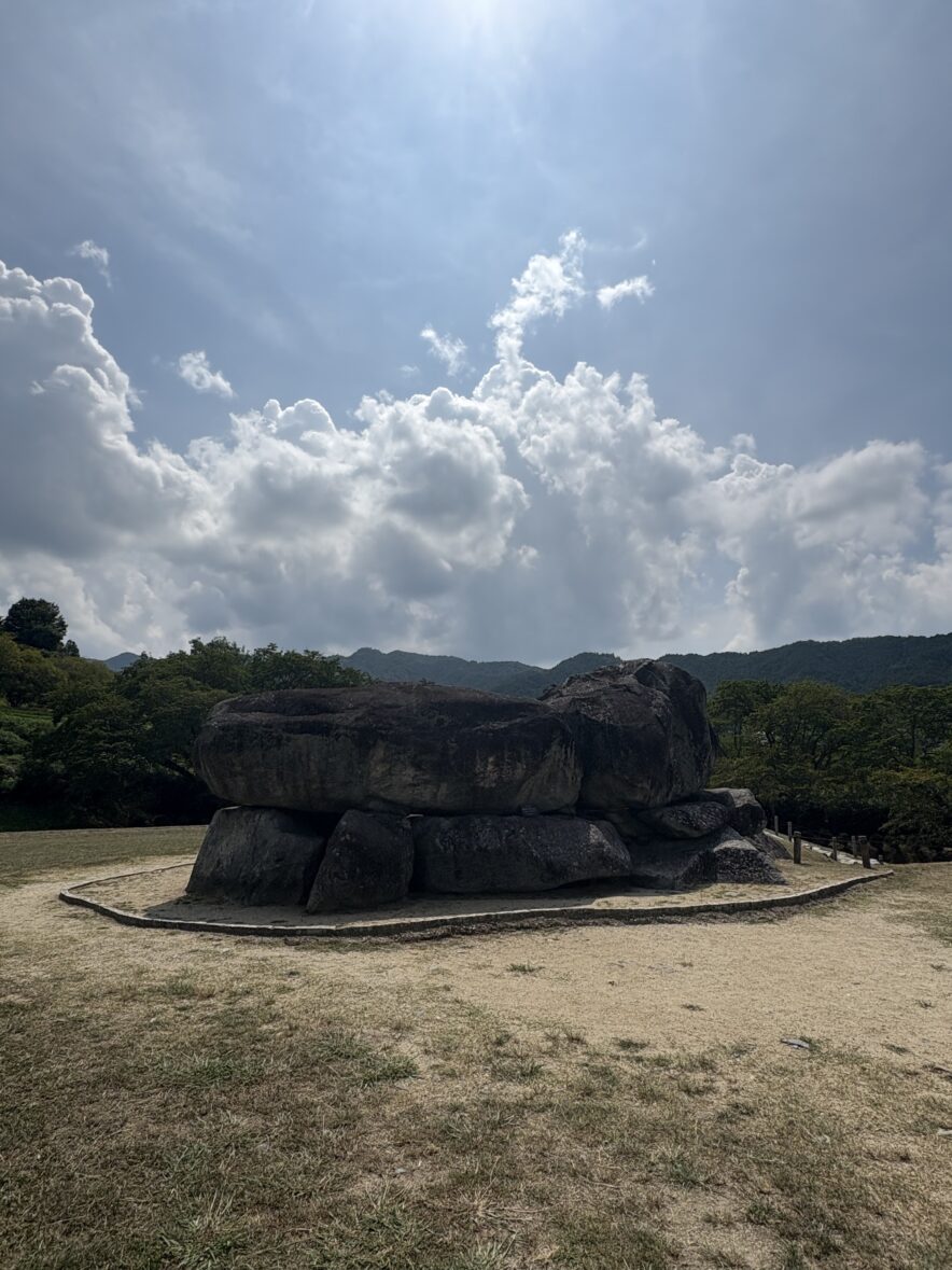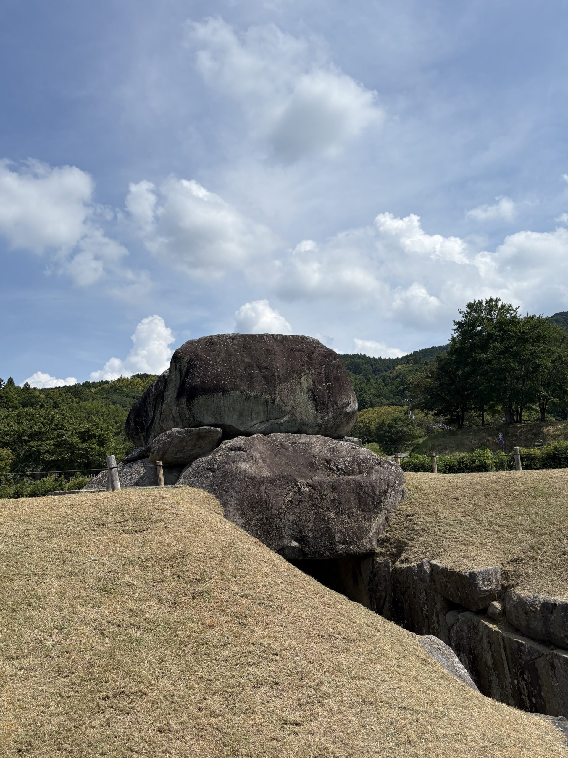 中にも入れますので中に入ると石が見事に積まれていて、「ほー」と感じますが、社会歴史の先生が言っていたのは「なんでこんなにむきだしになっているのだろうか?」というやつです。仁徳天皇陵のように前方後円墳でもないし、ぽつんと一軒家のようにお墓がここにあるのか、偉いさんだった蘇我馬子の周りに埴輪とか土偶とか玉垣がないのはなぜか、という話です。
