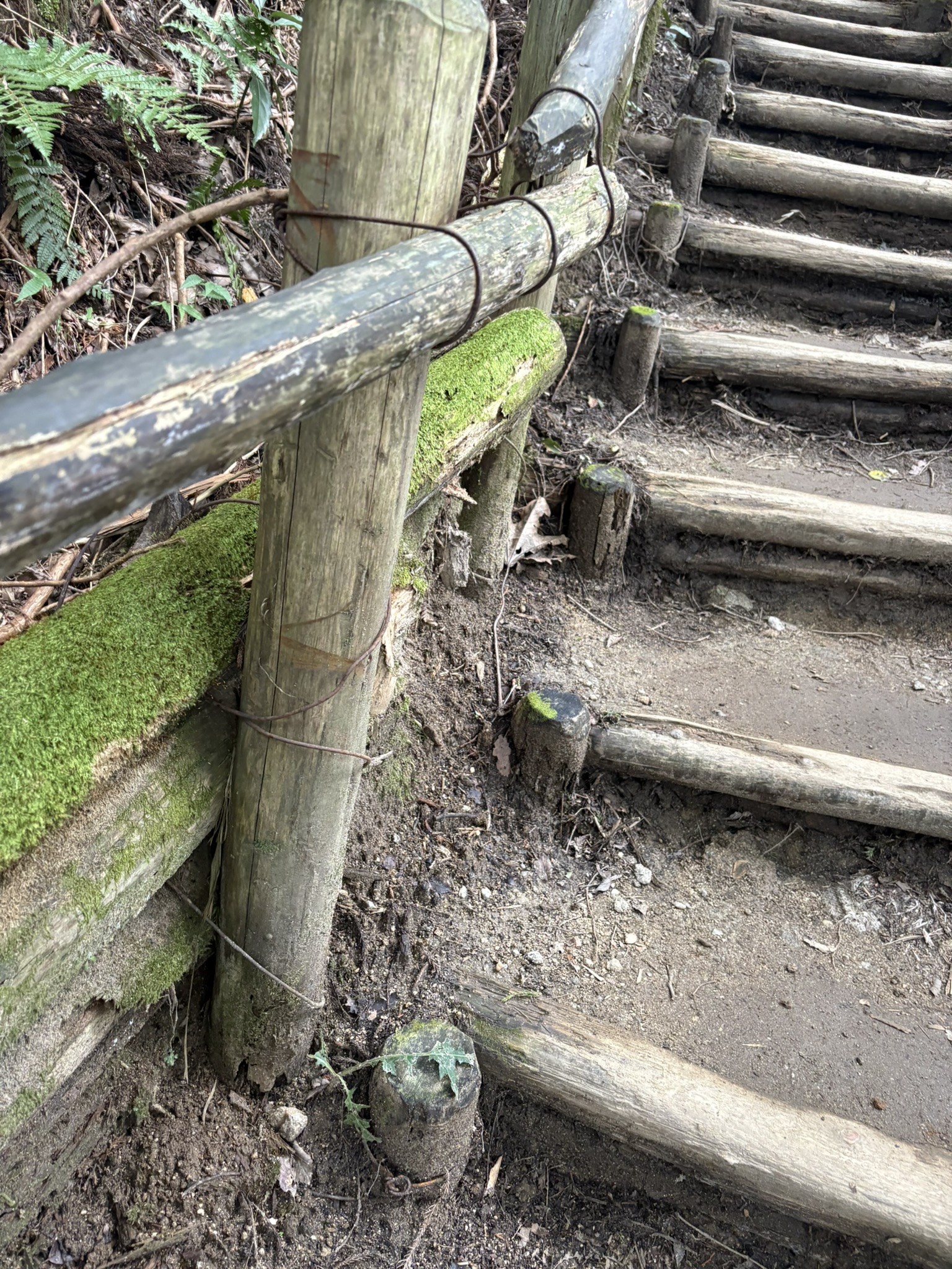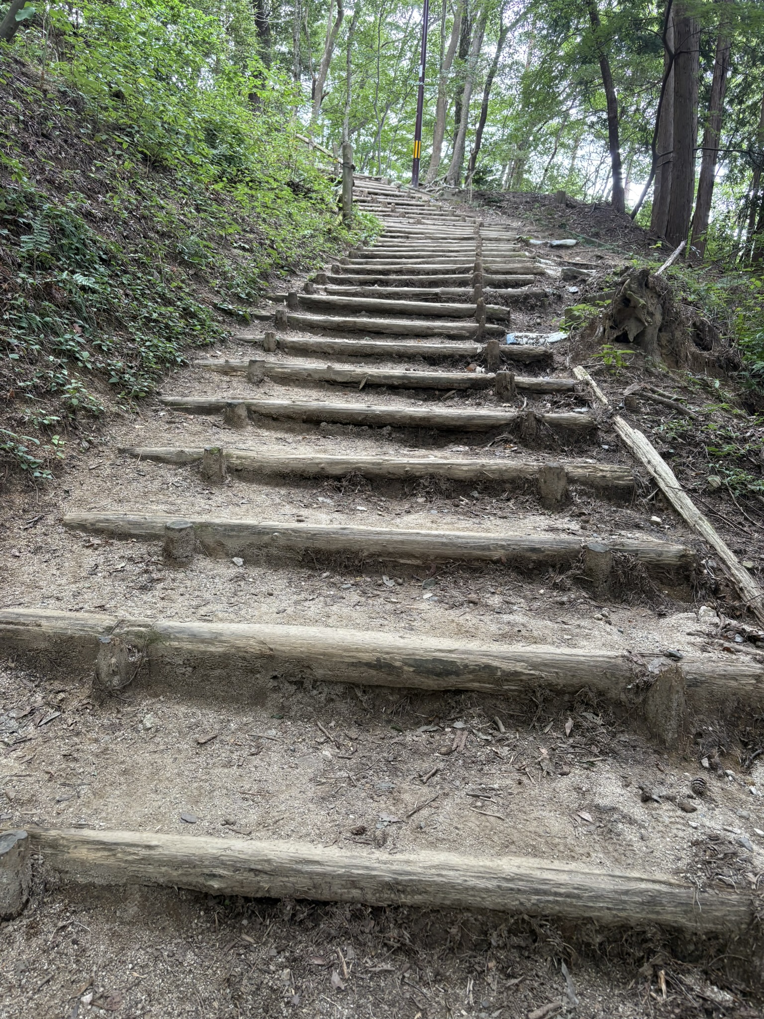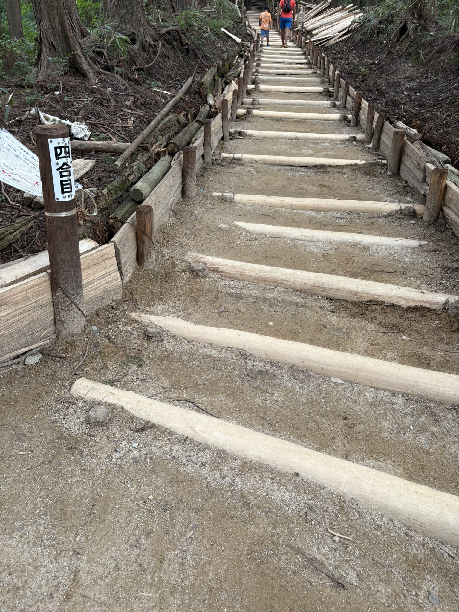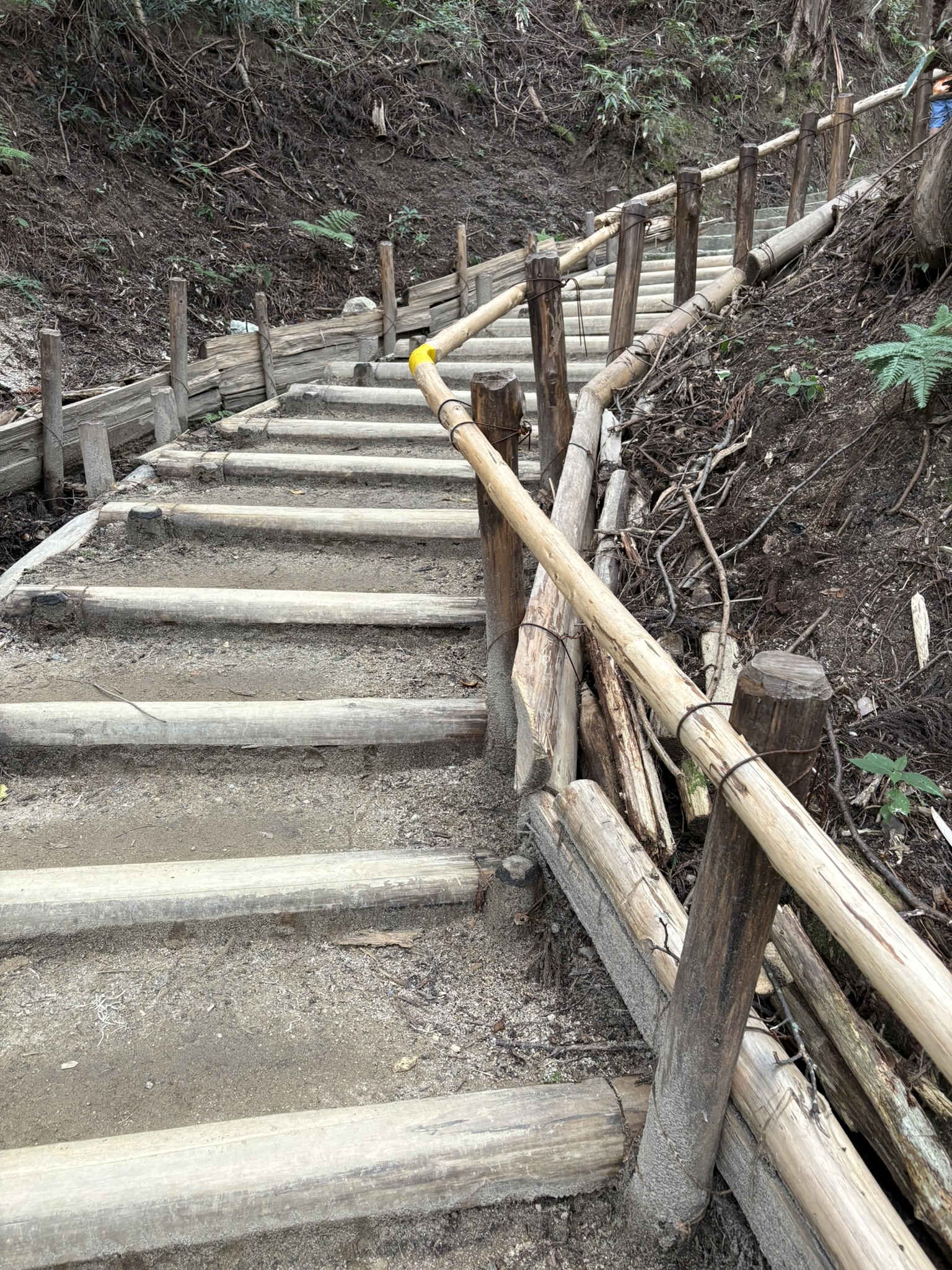 金剛山は道がきれいです、日々歩かれている金剛錬成会さんの尽力でしょうか、手すりはついてるし階段の木は手入れが行き届いているし、5合目のバルタン聖人とウルトラマンはただの趣味かもですけど、歩きやすくて本当に感謝です。世界遺産と言っても熊野古道の中辺路でも高野山の町石道でも黒河道も、長さ違うのもあるのですけどこんなにきれいでなかったですので、ただただ歩きながらきれいだな、きれいだなと感動を覚えていました。あと小学生とか幼稚園児も上まで登っていて、なかなか元気で健脚な子もおったりしてほんとにいいですね、金剛錬成会さんありがとうございます。