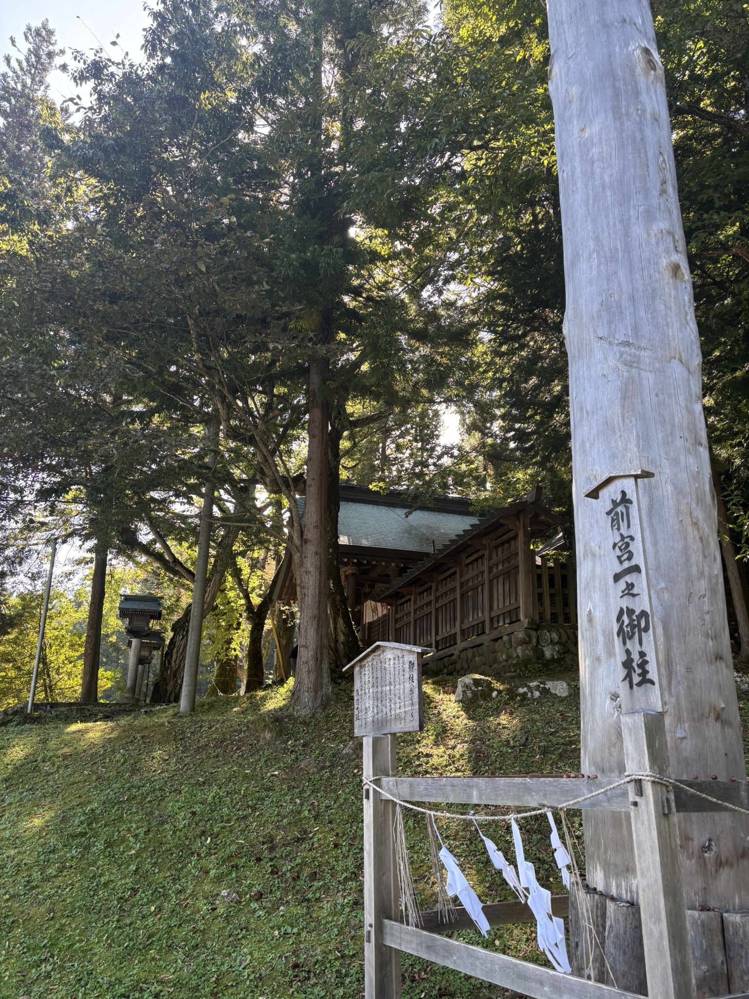 水の神、風の神、農業の神、また軍神として信仰を集めていまして、なんと4社もあります。諏訪湖をはさんで10km以上も離れて南に上社、北に下社があります。そして上社には本宮(ほんみや)と前宮(まえみや)、下社には春宮(はるみや)と小説「一路」にも出てくる秋宮(あきみや)の計4つになります。もちろん4つのお社全て4本の御柱に護られています。