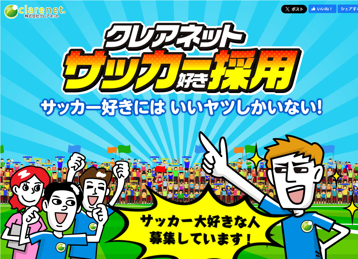 株式会社クレアネットはサッカー採用という面白い採用もやっている会社です。最後までお読みいただきありがとうございました。