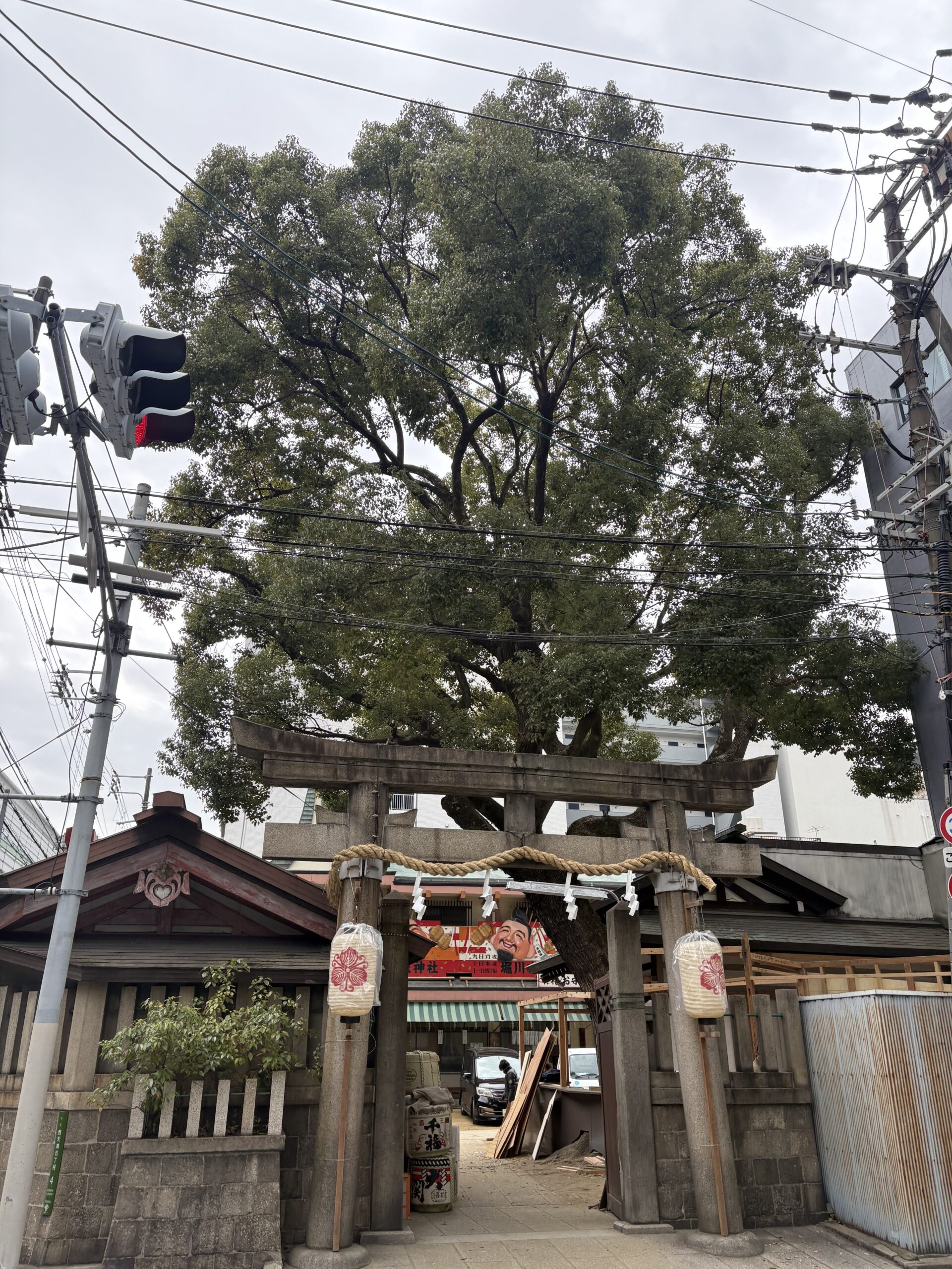 実は萬国観光さん寄贈になってまして、改めて知りましたが立派なものです。神社におまいりなんかもえべっさんで賑わう堀川戎、実は平日はまあどこの神社も一緒ですけど静かで都会のオアシスになっています。