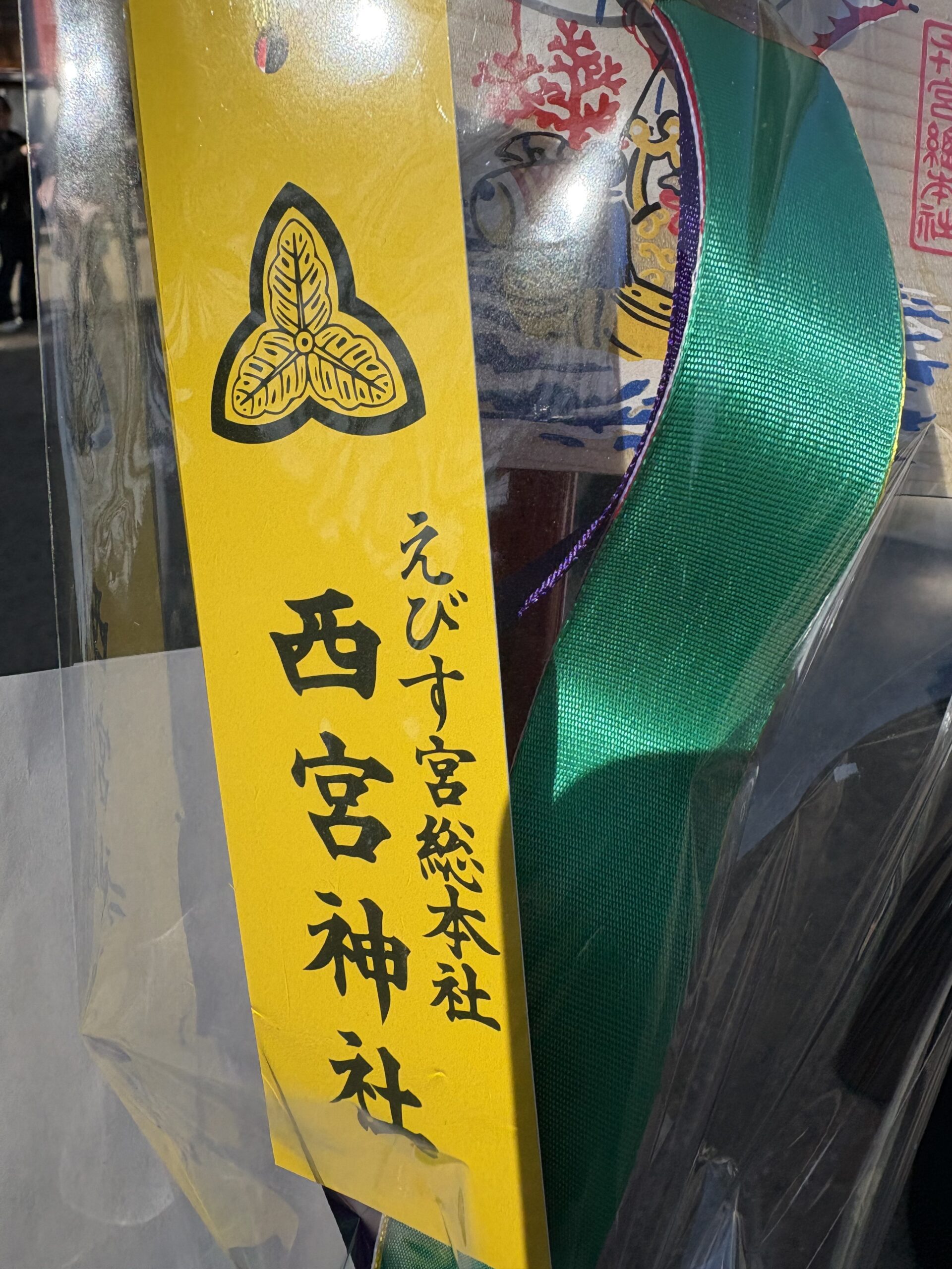 西宮神社は福の神として崇敬され七福神の一神ともされるえびすさまをお祀りする総本社です。御祭神の蛭子大神(えびすさま)をまつってます。大阪だとミナミは今宮戎神社さん、キタは堀川戎さんが有名ですが、西宮は3000あるえべっさん神社の総本山ということです。えべっさんは釣りの神様と言われてまして、釣りに笹の木使ってたから今でも商売繁盛笹持ってこい、いうとか。福を招き入れる「招福御幣」12月1日から2月末までの特別授与品ということで、しっかりゲットしました。