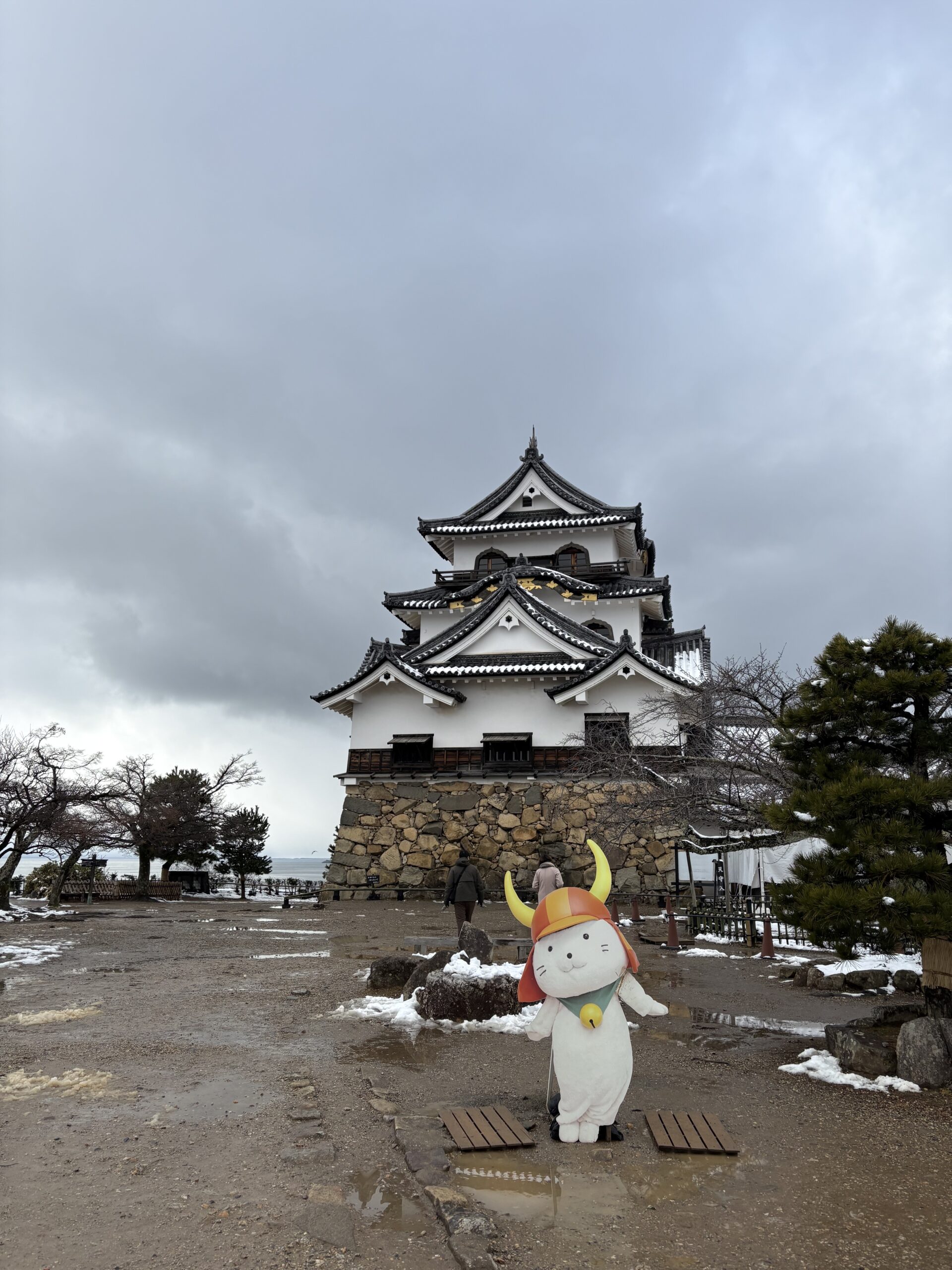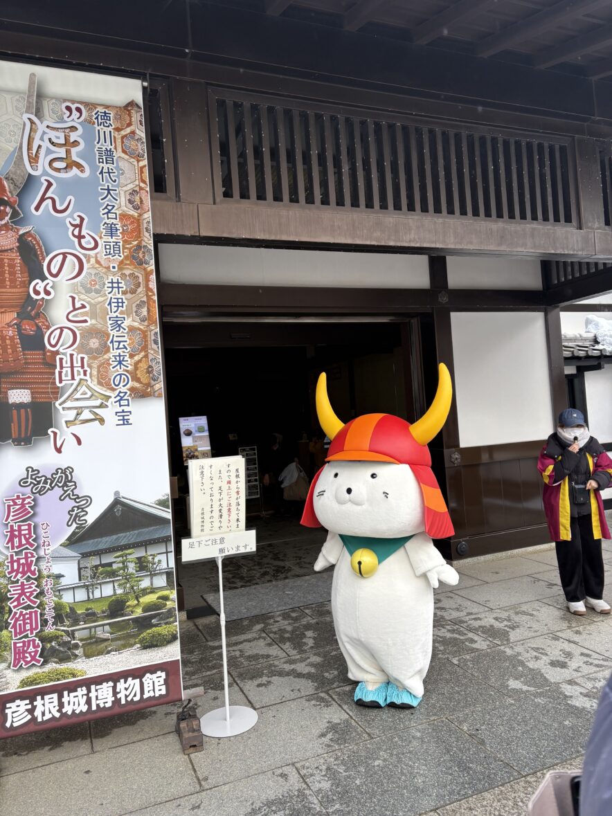 念願の雪化粧彦根城とひこにゃん発見