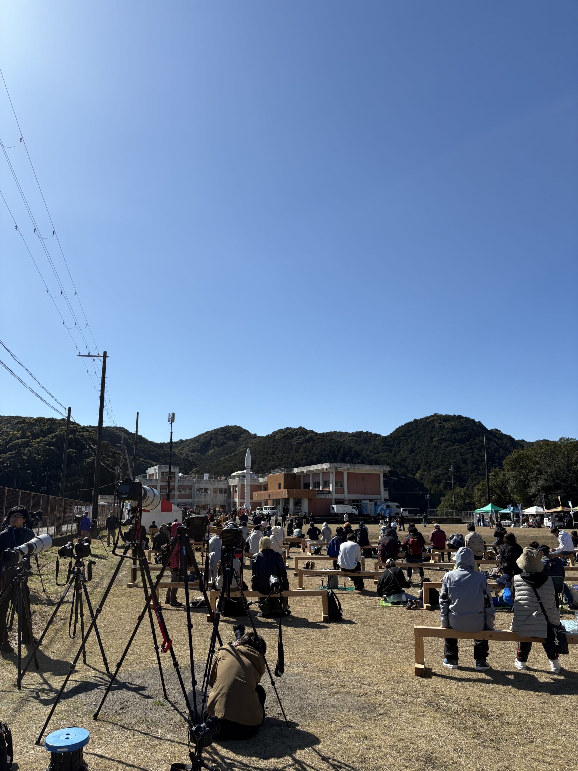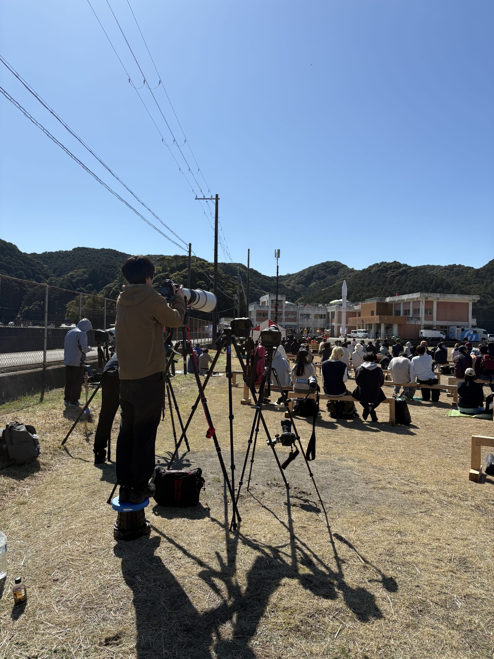 いざカイロス発射の撮影でどの角度のどこからがいいのか、初見でわかるはずないのでそういうときにはプロ撮影者さんを見るのが正解であって、「どこがいいすか?」聞くのは愚問なので、どの場所からのどの位置から撮影しているのかを感じるのが最も正解、と思っています。体制や所作、カメラの角度に待つ態様と雰囲気などなどが全て先達なので、やはり先達は何ごともあらまほしきことなりです。