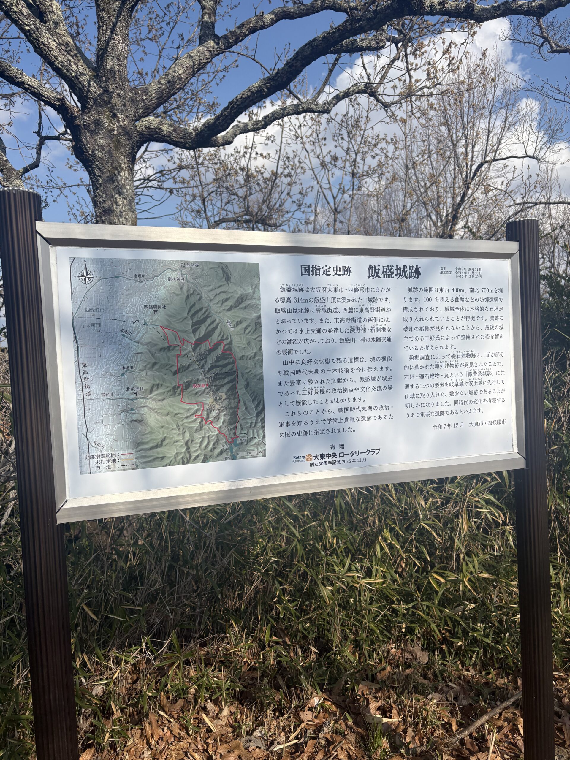 そんな桜井の別れの楠木正行公、飯盛山山頂に大きな銅像がありましてここにある看板がきれいになっていて、大東中央ロータリークラブさんが変えてくれたようです。