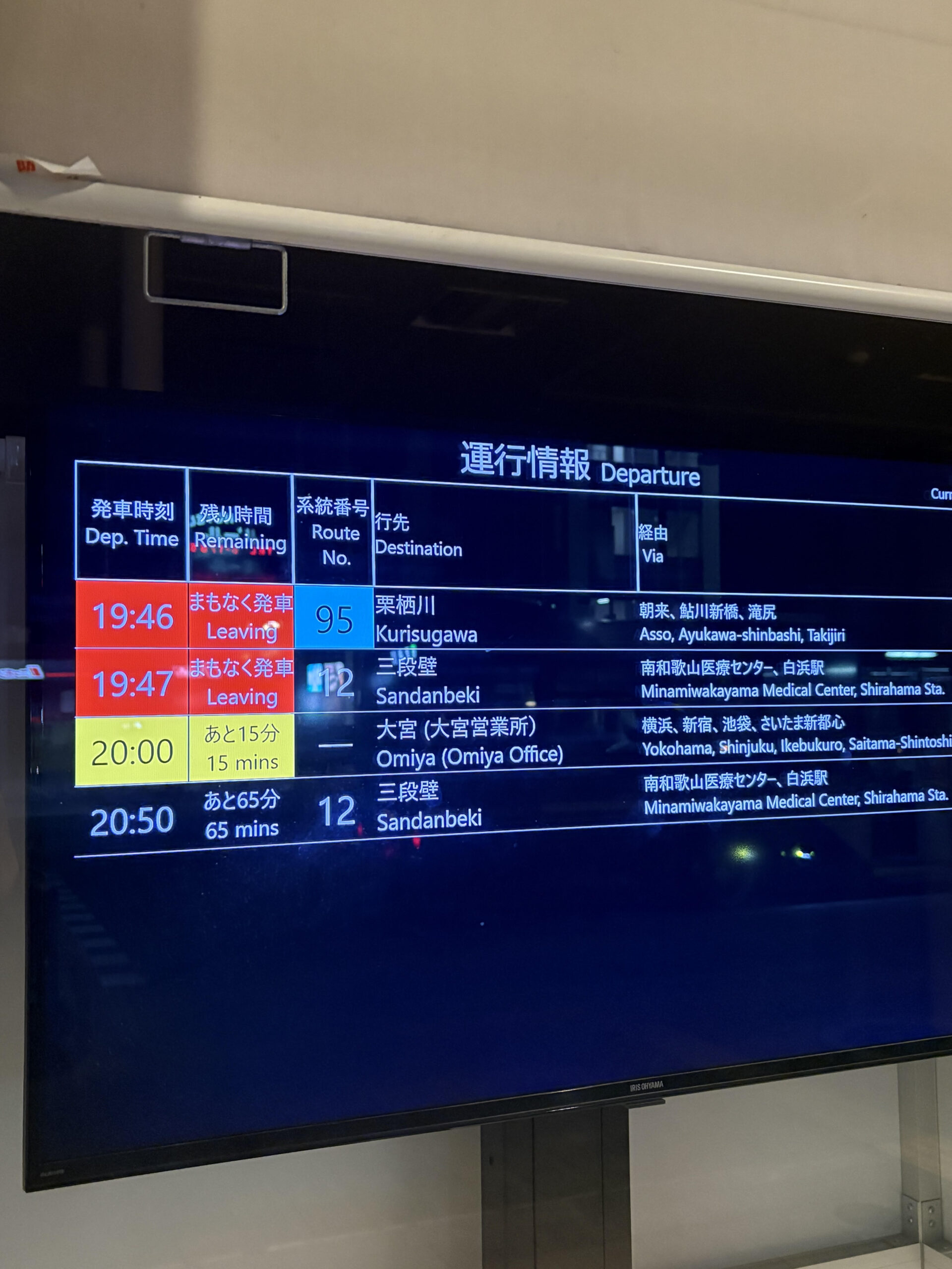もちろん池袋から紀伊田辺駅もあるわけでして、同じく夜出発の朝起きたら田辺駅というバスですが運転手さんも眠くないのかなとか思ったりします。